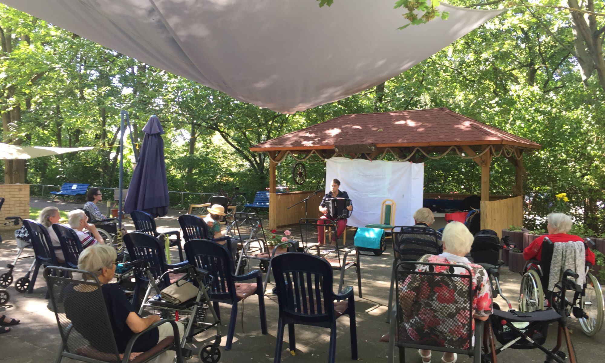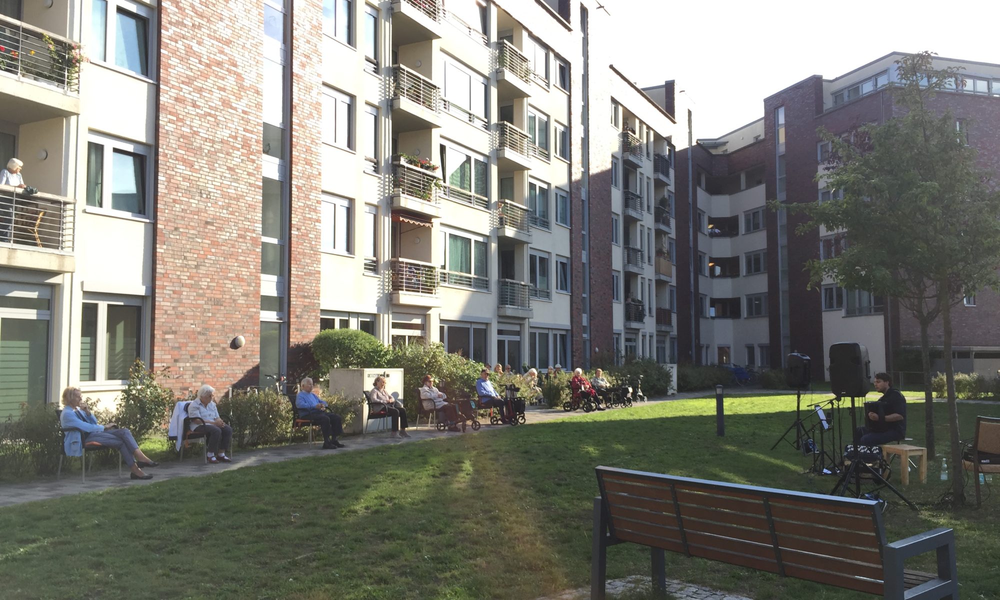 Idyllisch beschreibt den Nachmittag, den wir mit den Bewohner*innen vom Haus am Weinbergsweg in Berlin Mitte verbrachten, wohl am besten. Die zweite Runde unsere Corona-Soforthilfemaßnahme untermalte diesen sonnigen Tag mit einer Stunde Livemusik.